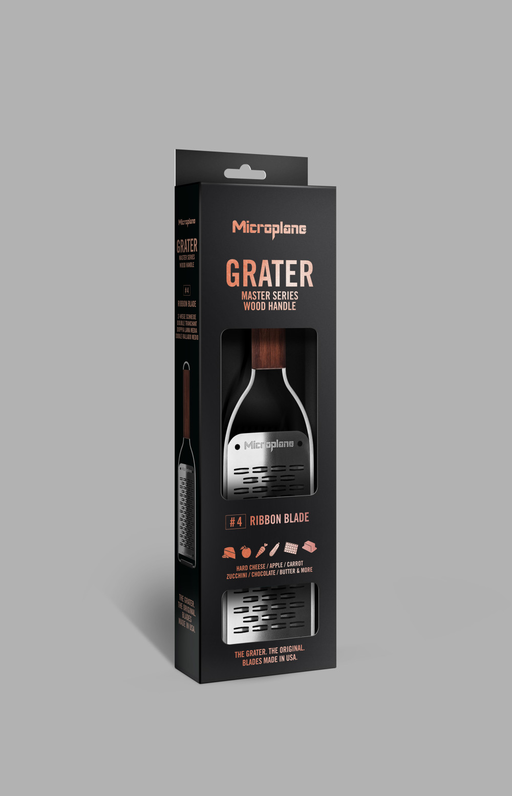 A Microplane® Exclusive reszelőcsaládja a Master széria, az új kollekció az elegancia és minőség megtestesítője, amiben egyesítették a diófa szépségét a rozsdamentes acél időtállóságával. A Microplane ikonikus famegmunkáló termékeinek örökségét és a mai modern kézműves stílust tükrözi. A Master széria modern stílusban, tartósságban és hibátlan teljesítményben a legjobbat kínálja. A kivételesen szép, olajozott diófa nyél (Amerikából származó diófa) kényelmes a kéznek, ugyanakkor melegséget és eleganciát kölcsönöz konyhánknak. Tökéletes munkát végez minden alkalommal, ezért a Master széria a tökéletes választás a konyhában tevékenykedő művész számára.